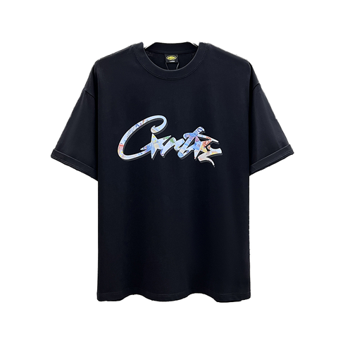 Venta al por mayor de los hombres 100% algodón estilo de la calle camiseta suelta Casual Top transpirable monograma patrón de carácter de longitud corta pesado