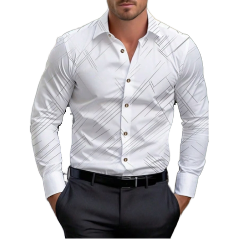 Camisas de vestir informales de manga larga para hombre, camisas transpirables de punto de un solo pecho, impresión Digital antiarrugas para primavera