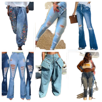 2025 pantalones de mezclilla de pierna ancha de cintura alta para mujer, moda informal de primavera y verano, encaje hueco versátil, empalme, cintura holgada con Logo