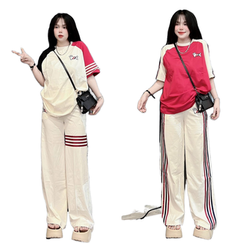 2025 קיץ odm קרסול אורך הקרסול שני חלקים מזדמן לסורג סט פסים פסים רחבים שרוול קצר פסים פסים רחבים מכנסיים ארוכים כיף חדש